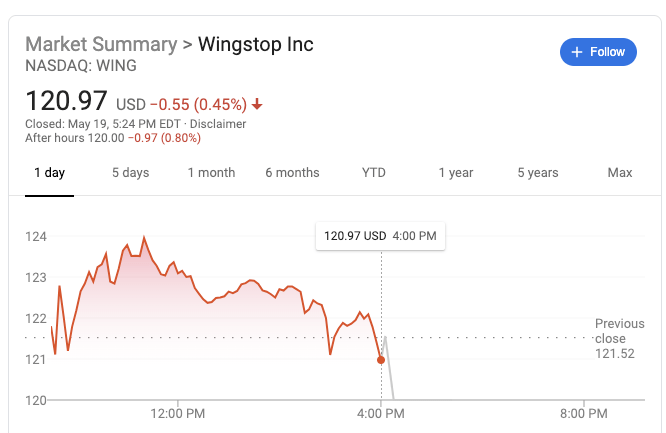 Let us step back for one second and take note of the fact that this shanty of a wings joint currently trades on the NASDAQ. Yes you read that right. Currently this stock is trading for $121/share. That alone should give you the TLDR; but I’ve got more so please read on.
